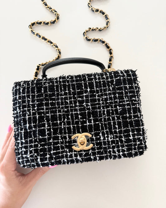 Chanel Black and White Tweed Small Top Handle Bag from 2023