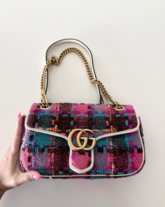 Gucci Pink/Multicolor Tweed Marmont Small Flap Bag