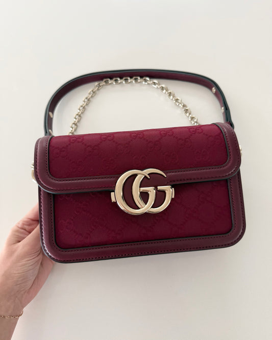 Gucci Dark Red Canvas and Leather Small Go Shoulder Bag