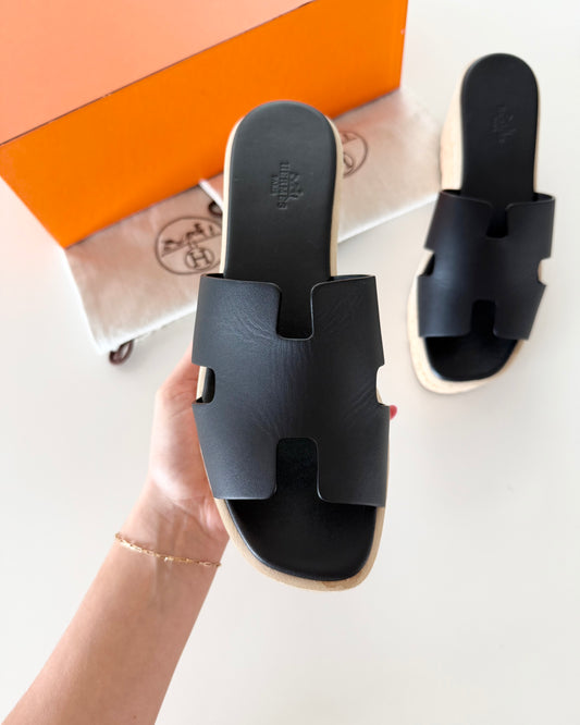 Hermes Black Leather Albâtre Eze 30 Platform Sandals Size 41