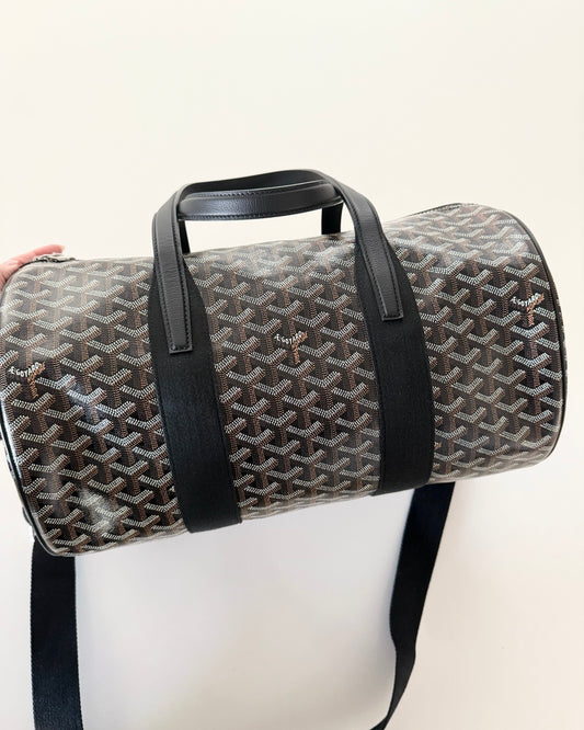 Goyard Black Chevron Print Coated Canvas Barrel Sport 40 Duffle Bag
