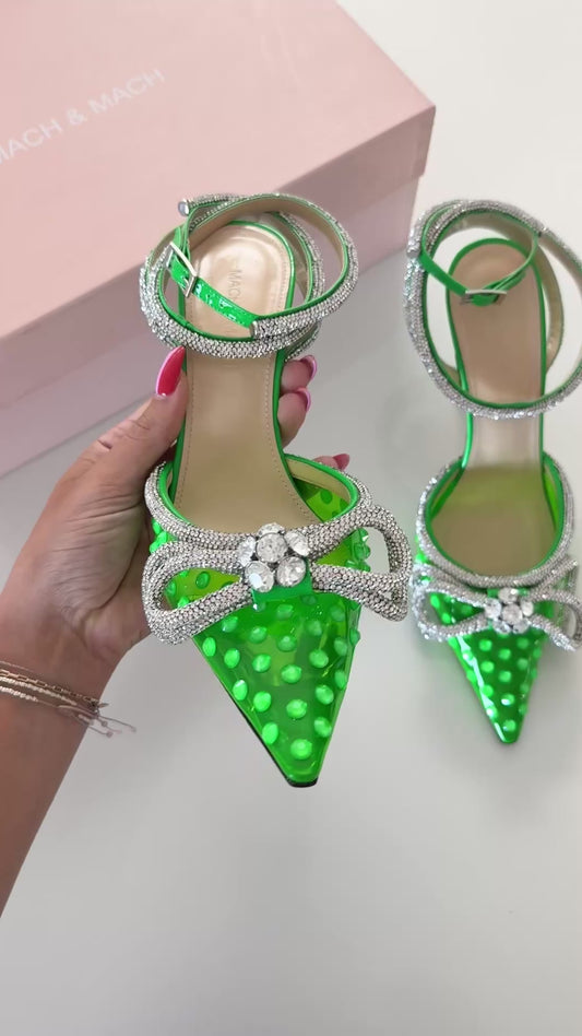 Mach & Mach Limited Edition Green PVC Spotted Double Wrap Bow Embellished Pumps
