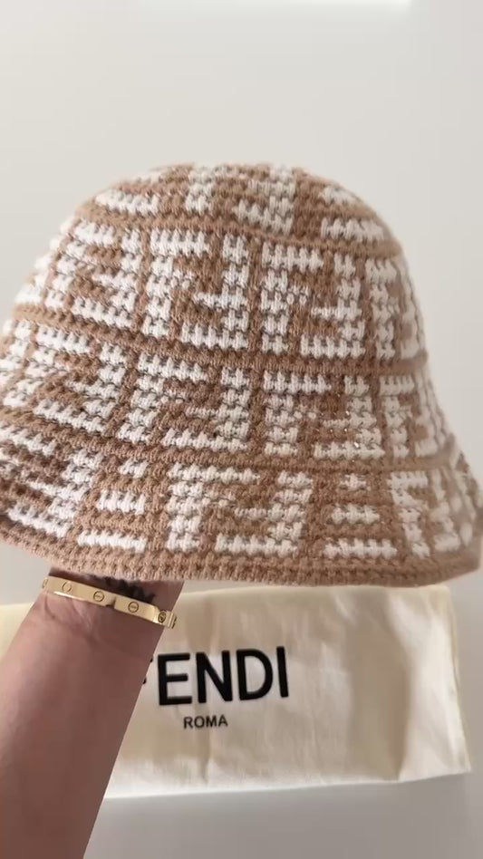Fendi Camel and White Cashmere Blend (65% Cashmere 35% Polymaid) Bucket Hat
