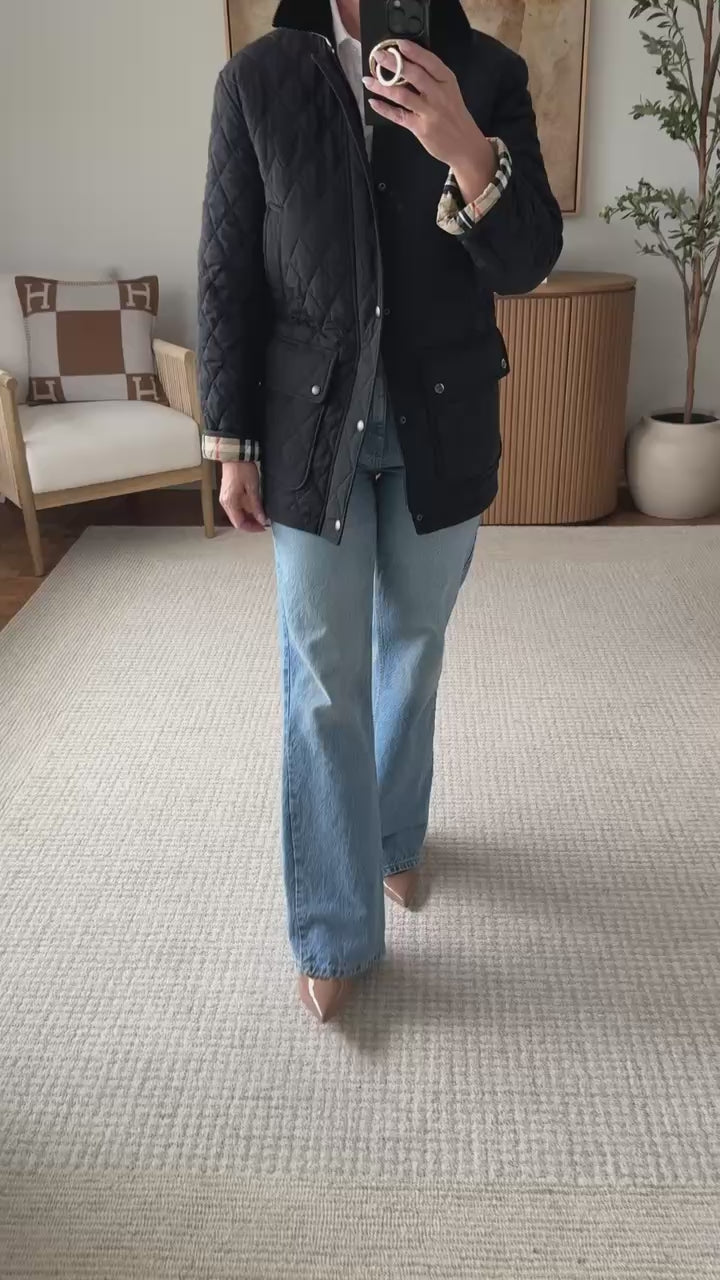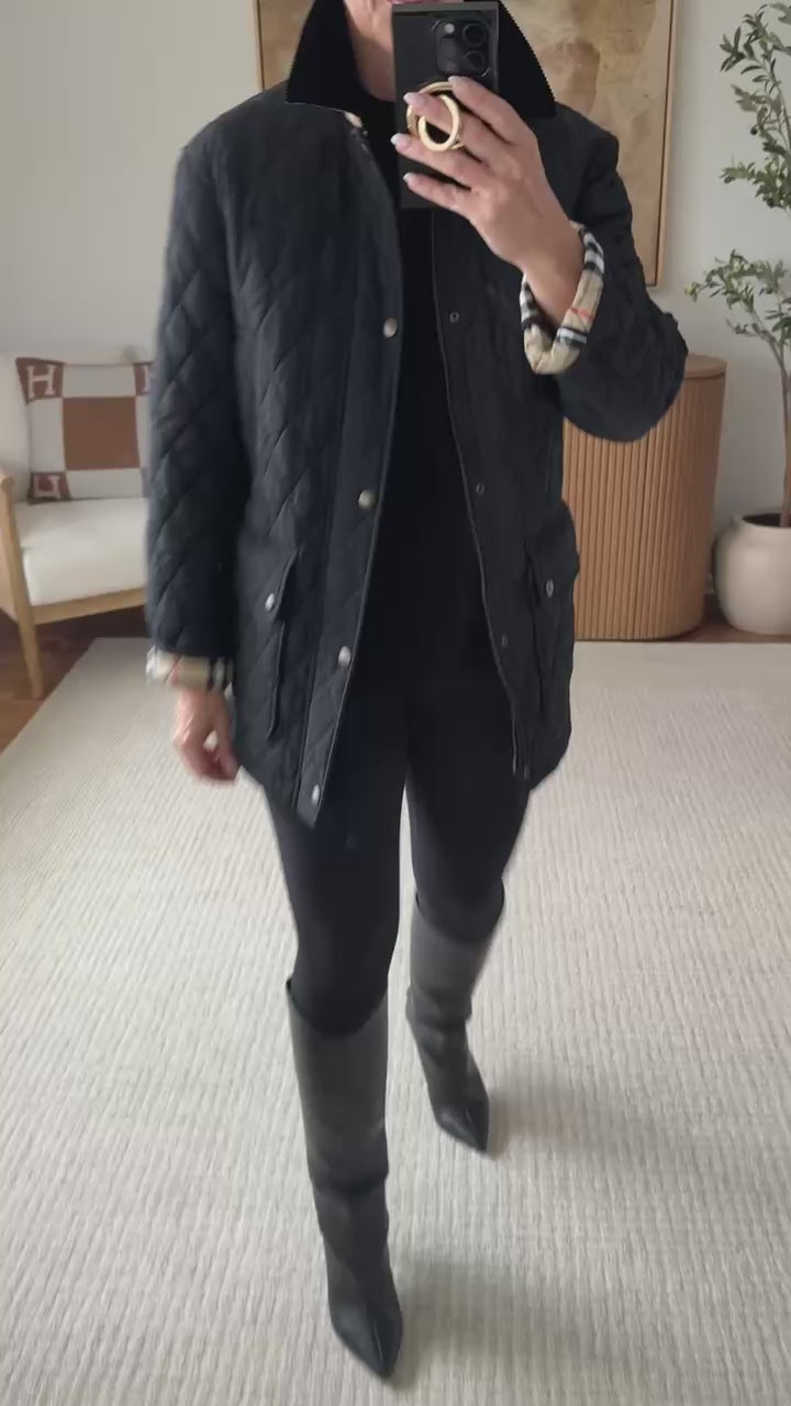 Burberry Black Quilted Nylon Barn Jacket size XS