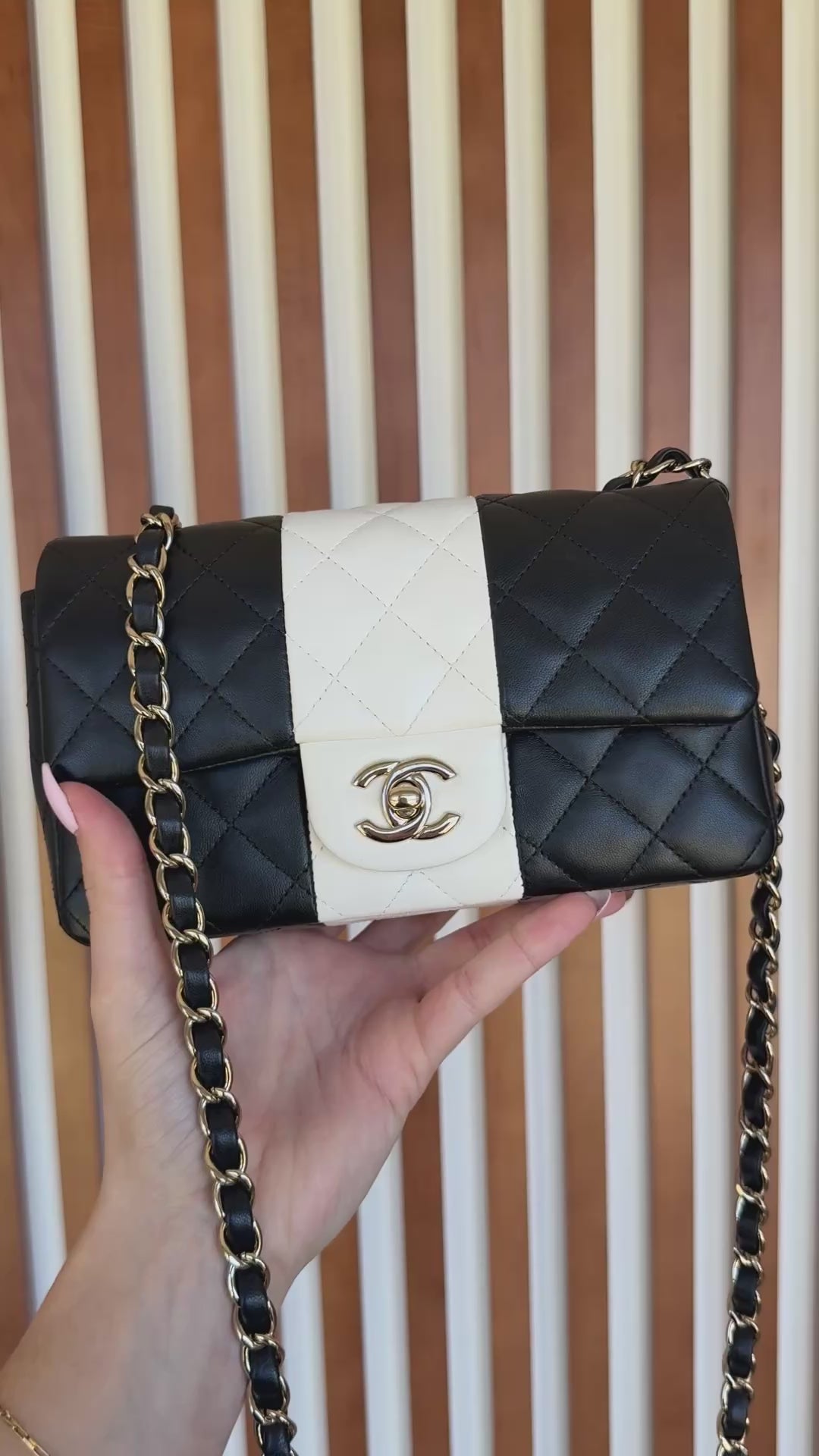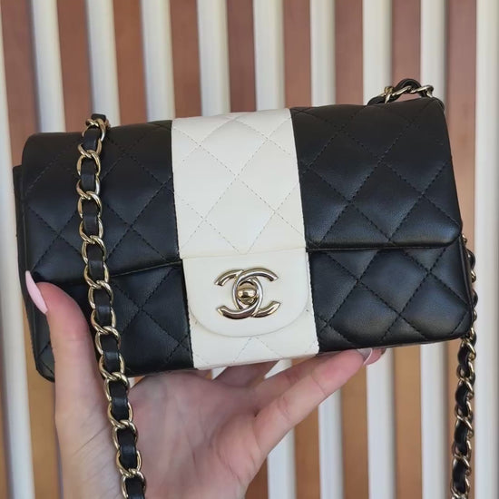Chanel Black and White Lambskin Quilted Classic Mini Flap Bag