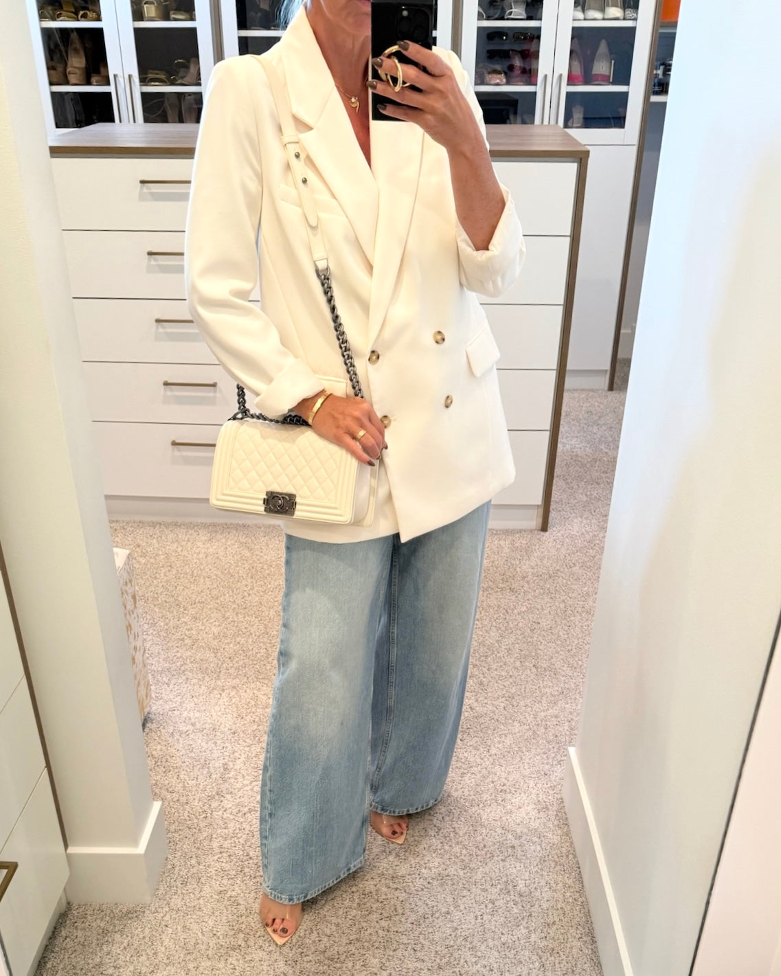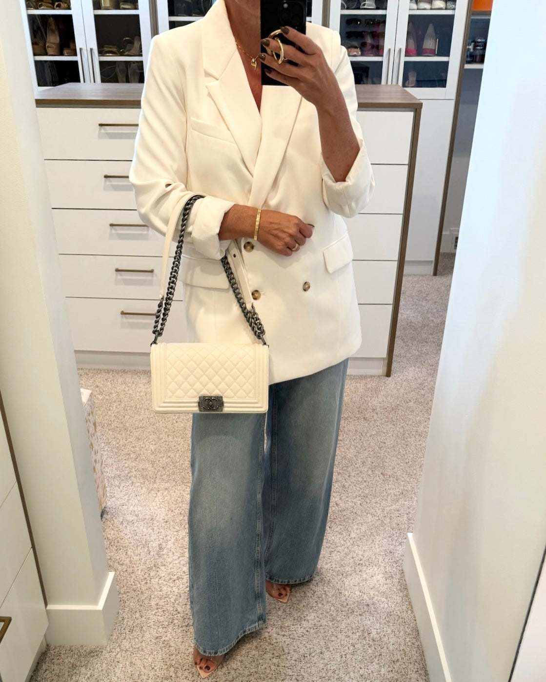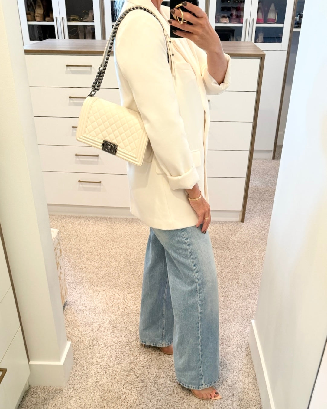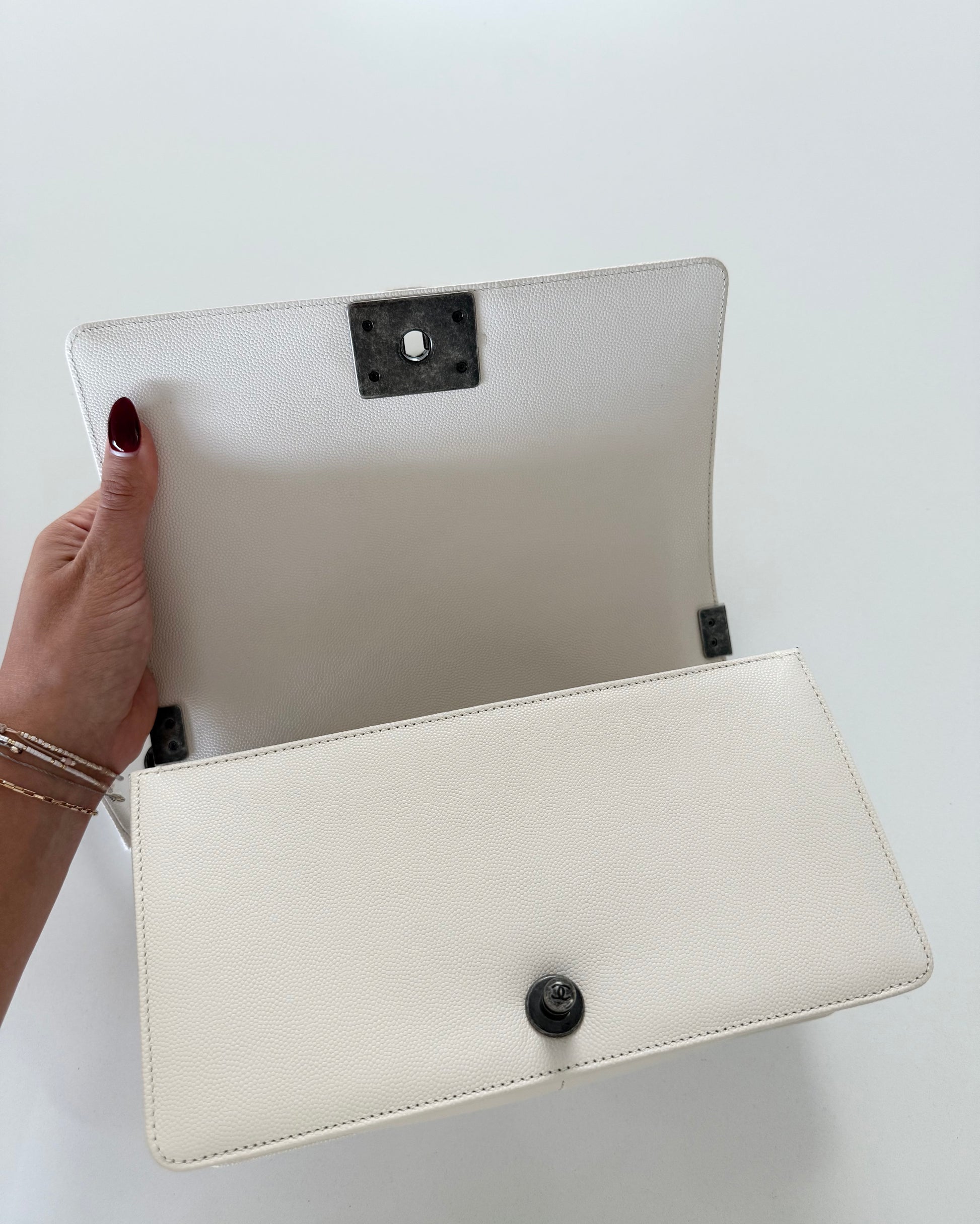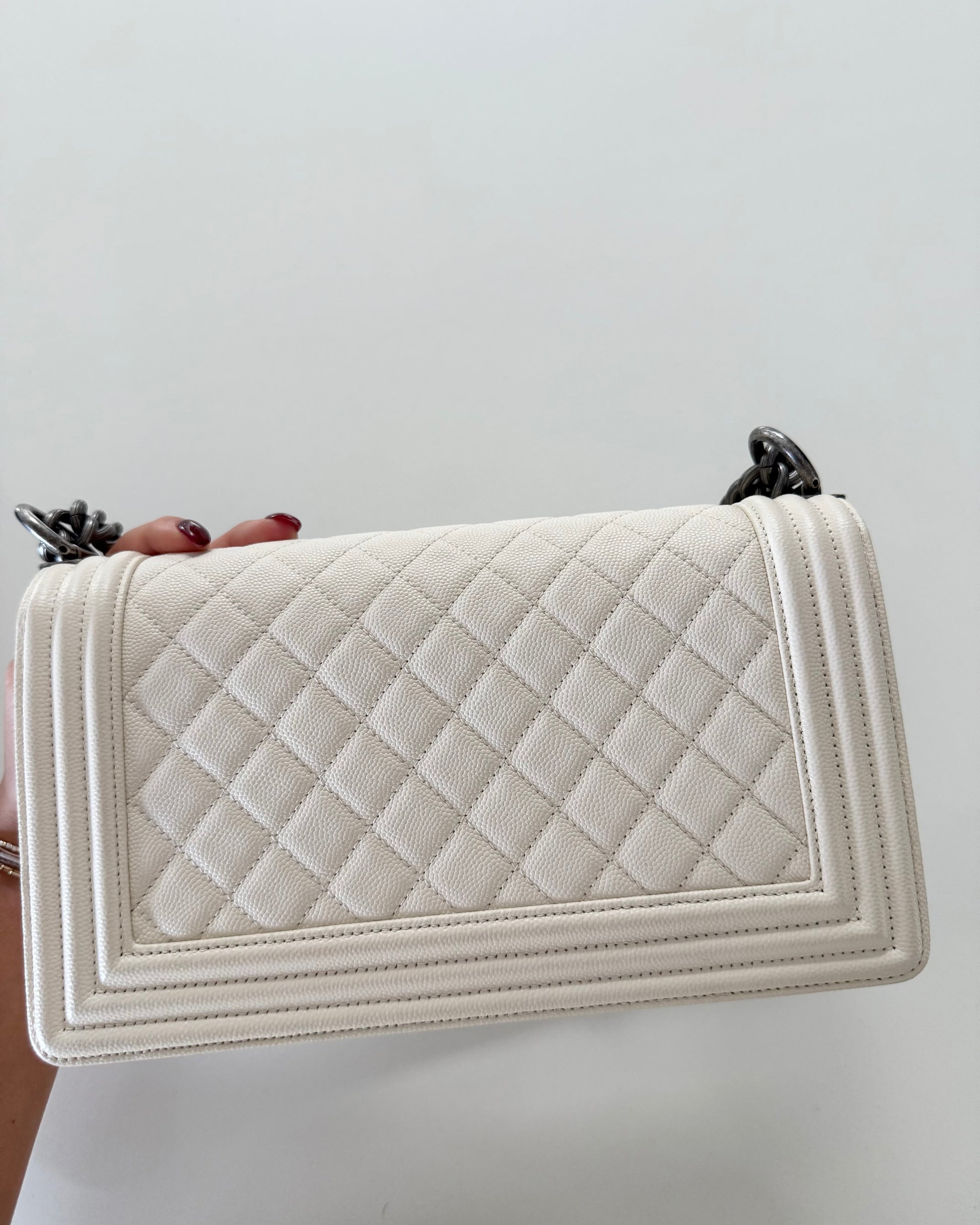 Chanel Ivory Quilted Caviar Leather Medium Boy Bag
