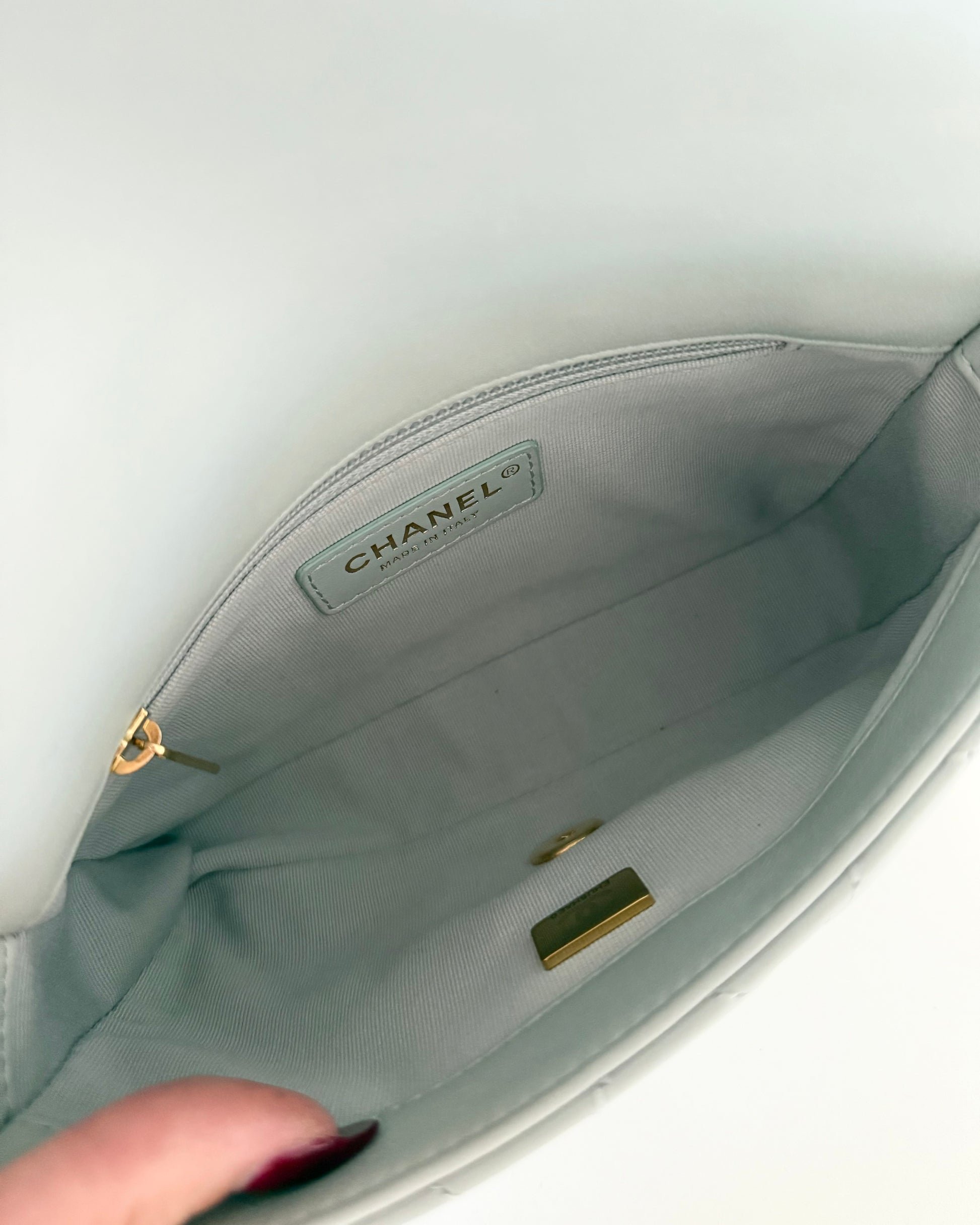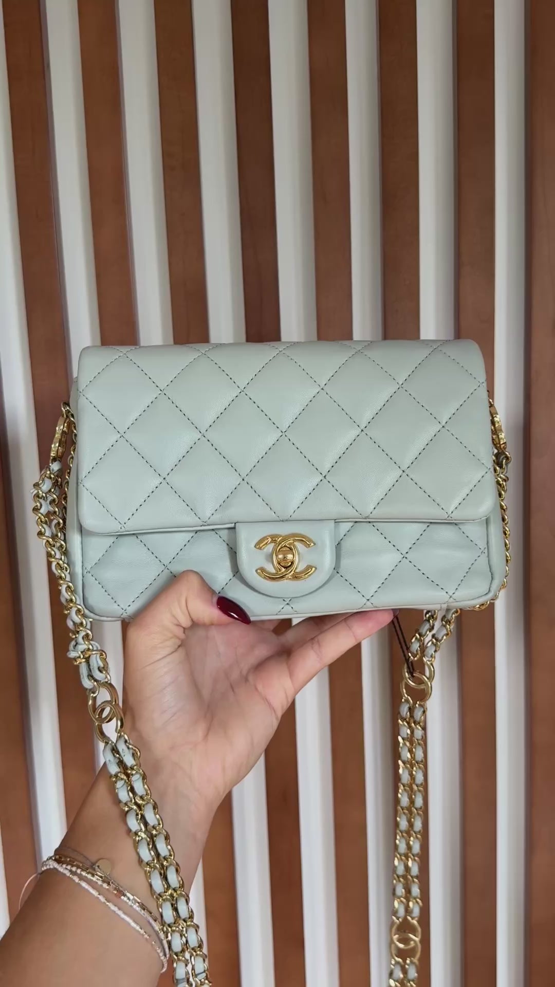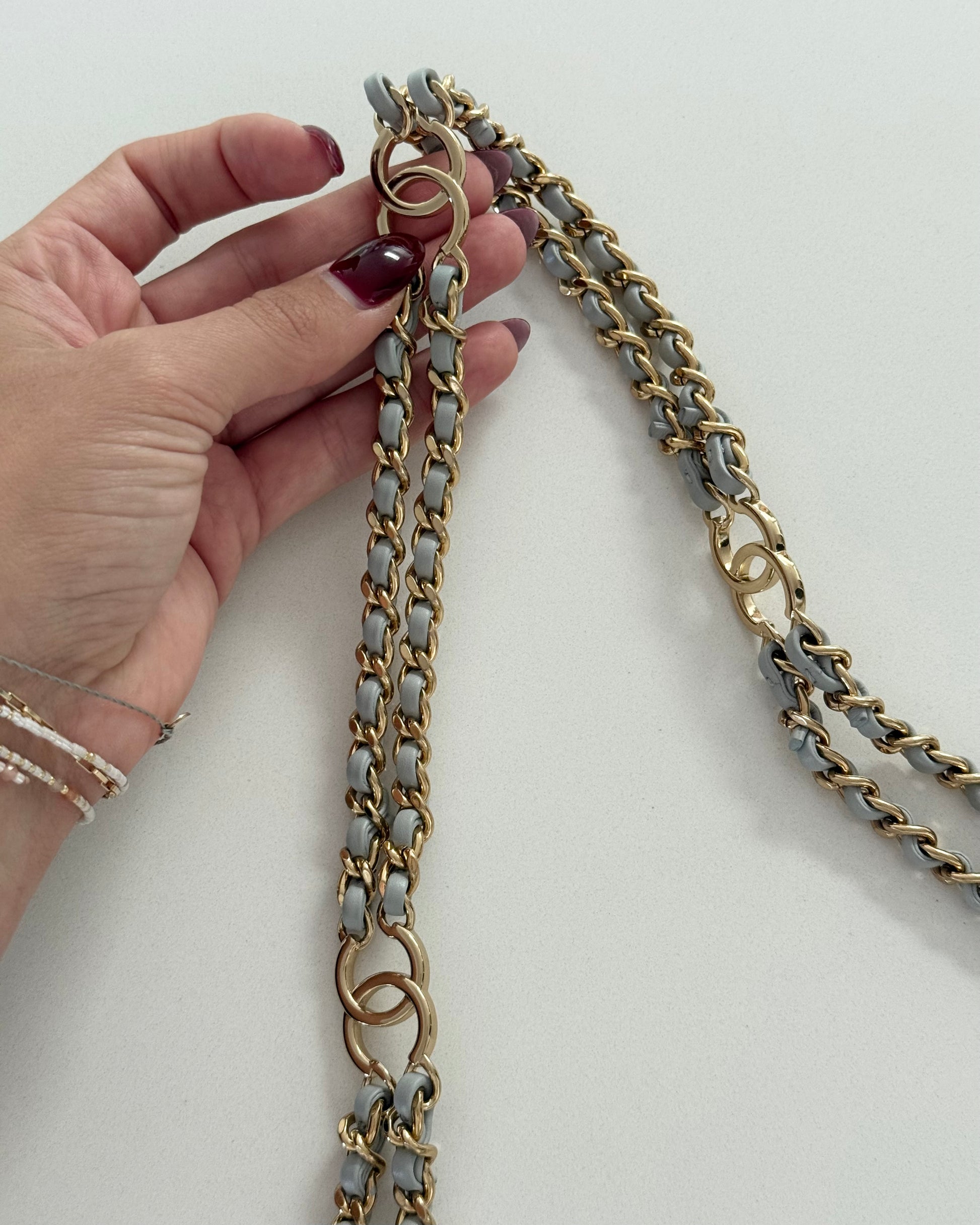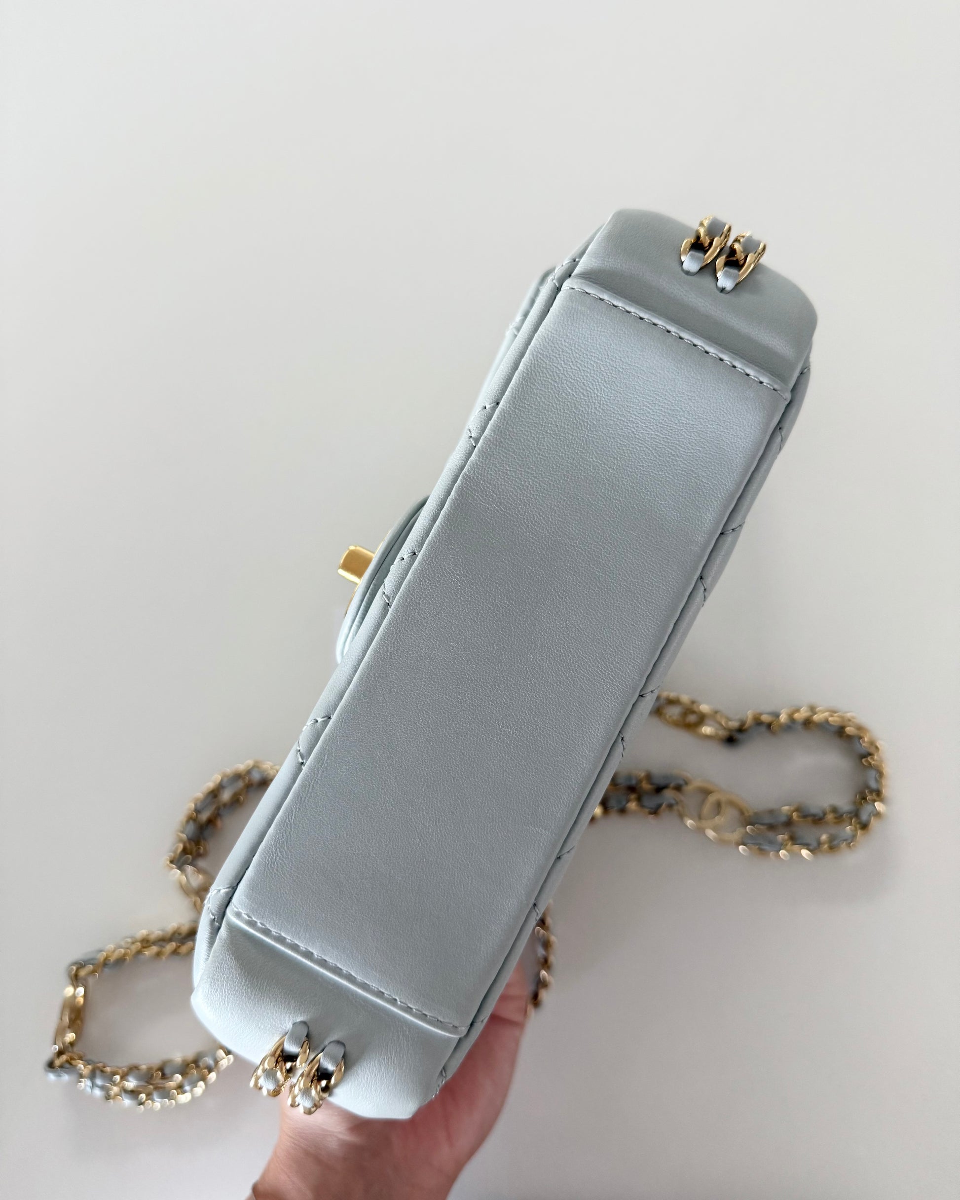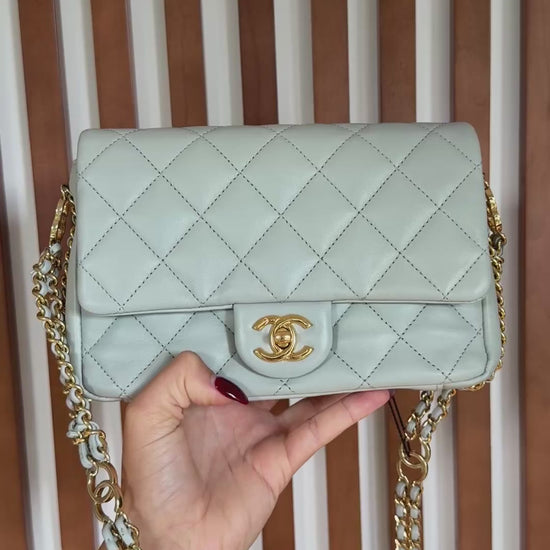 Chanel Light Grey Quilted Lambskin Leather CC Double Chain Flap Bag