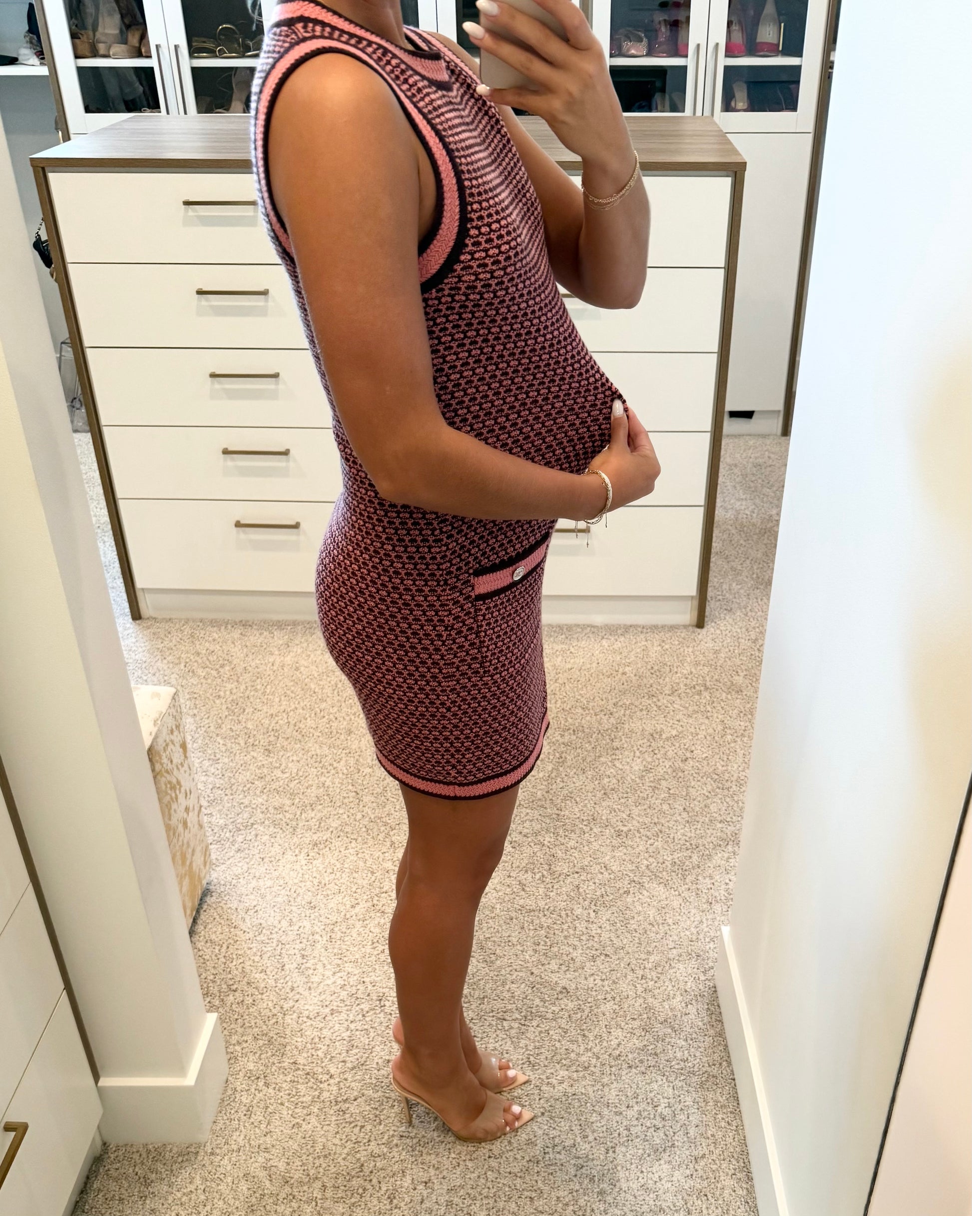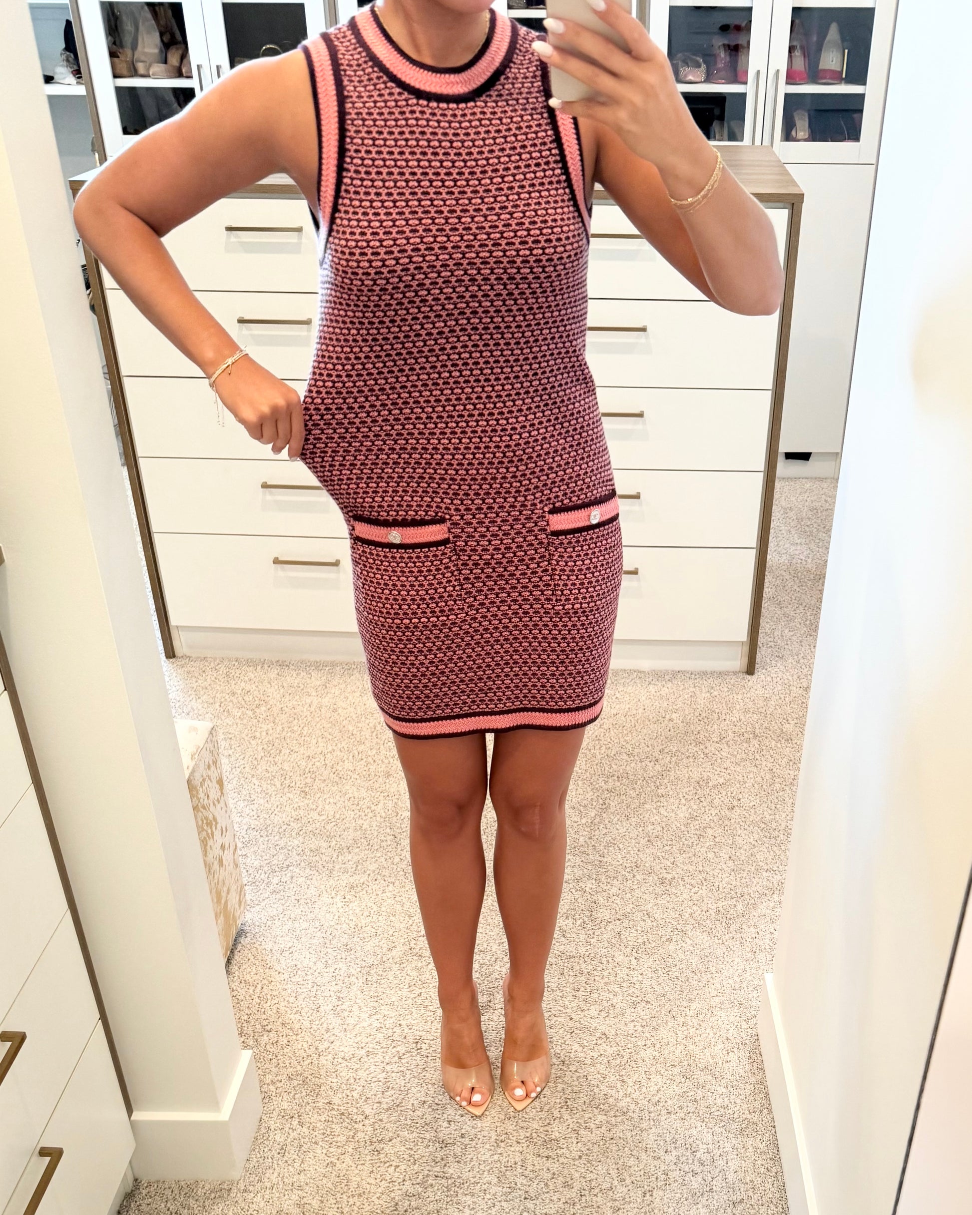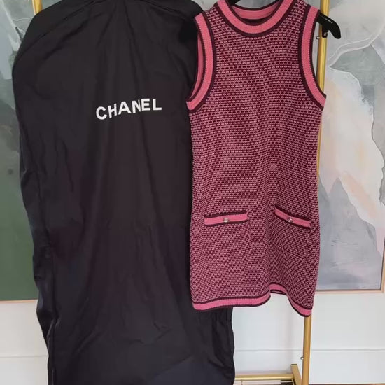 Chanel Pink/Dark Purple 100% Cashmere Sleeveless Mini Dress