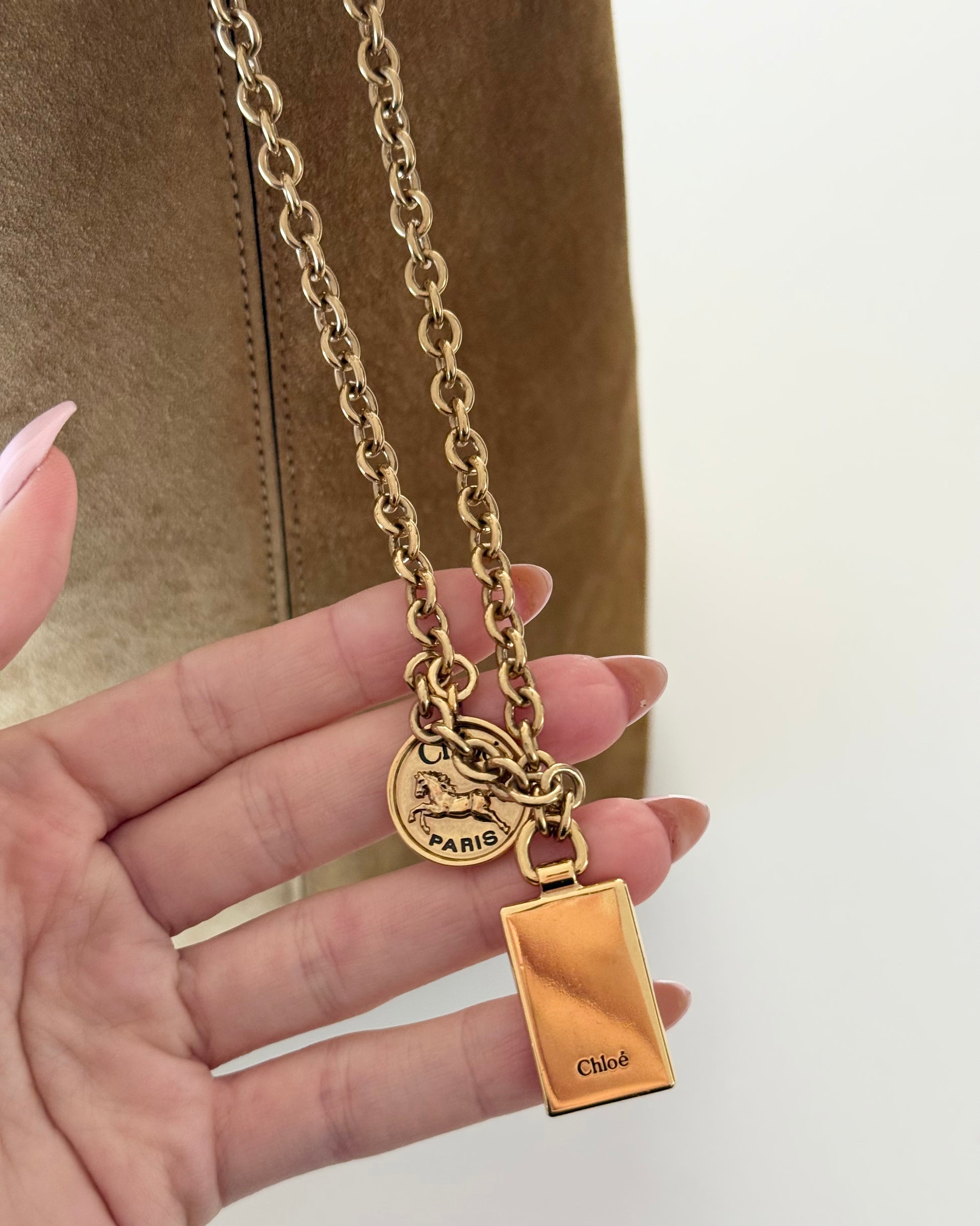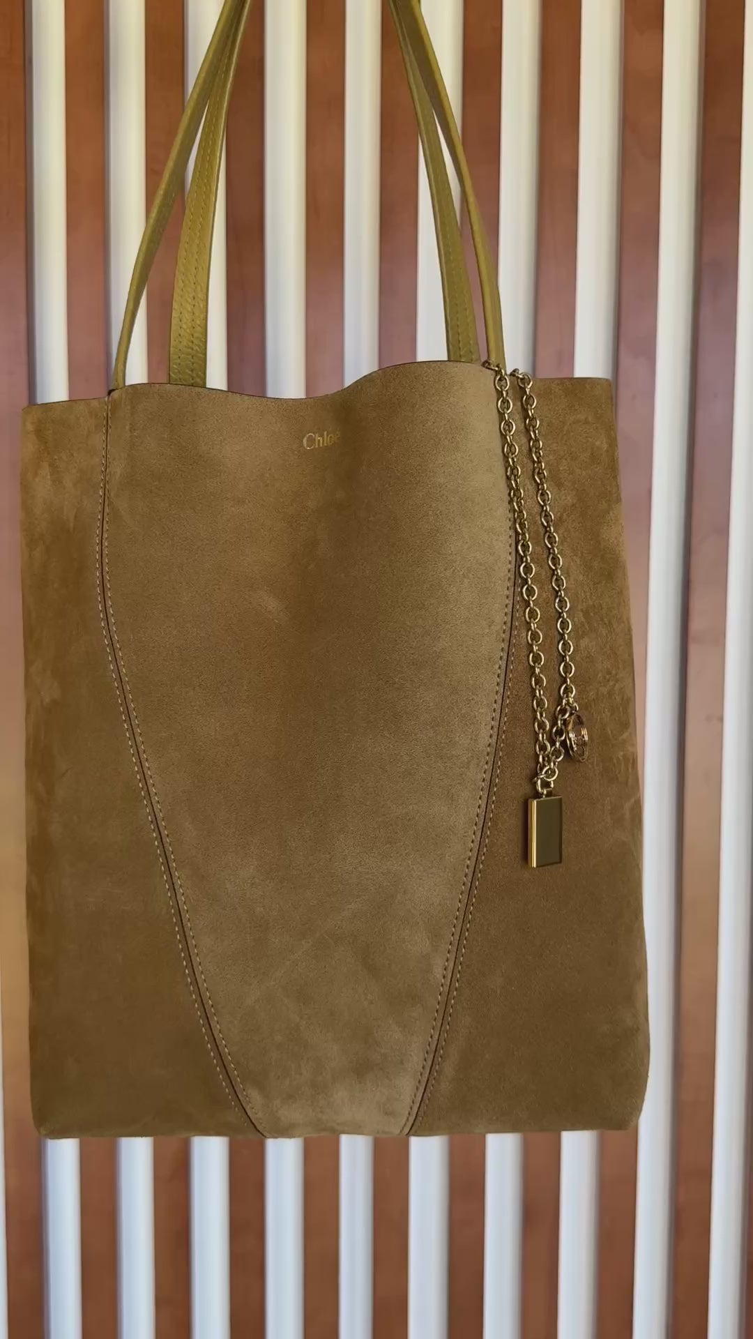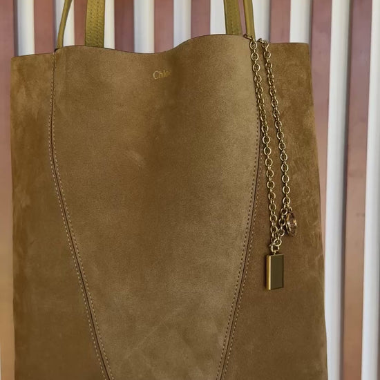 Chloe Gold Khaki Suede Spin Medium Bag With Charm