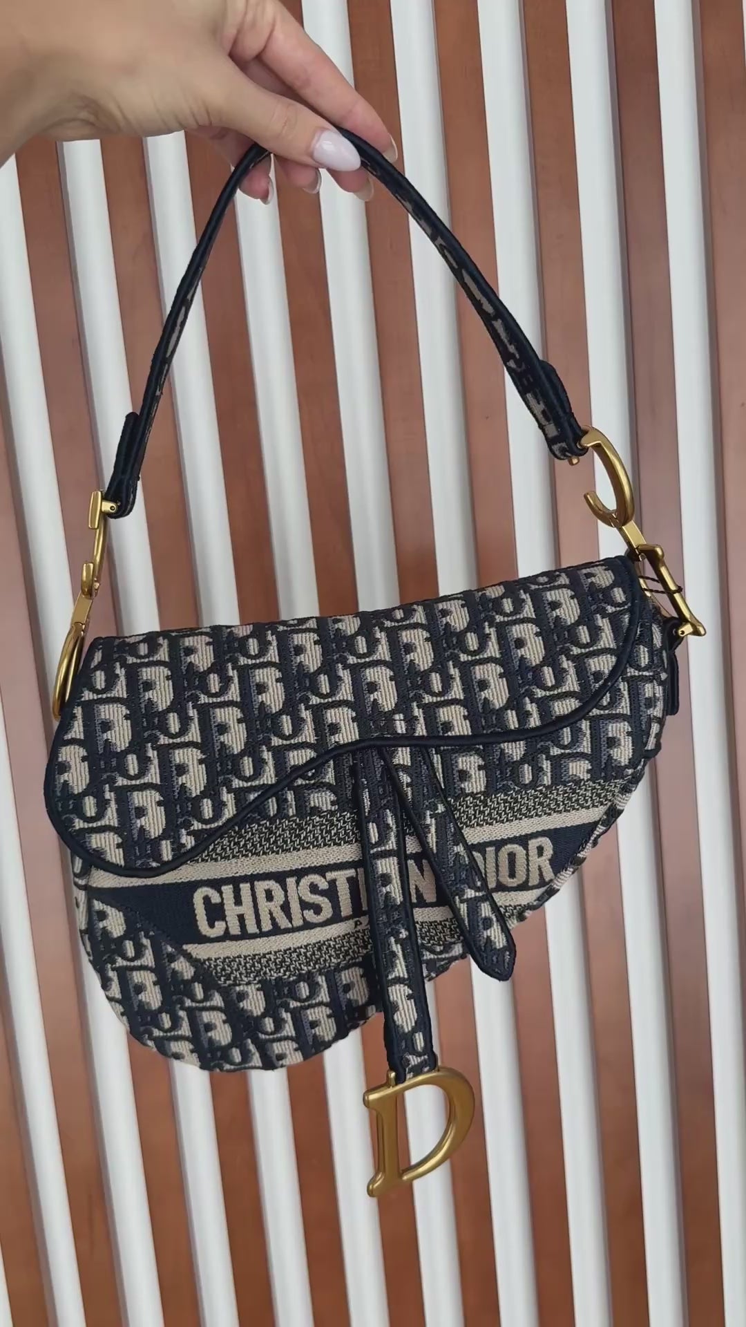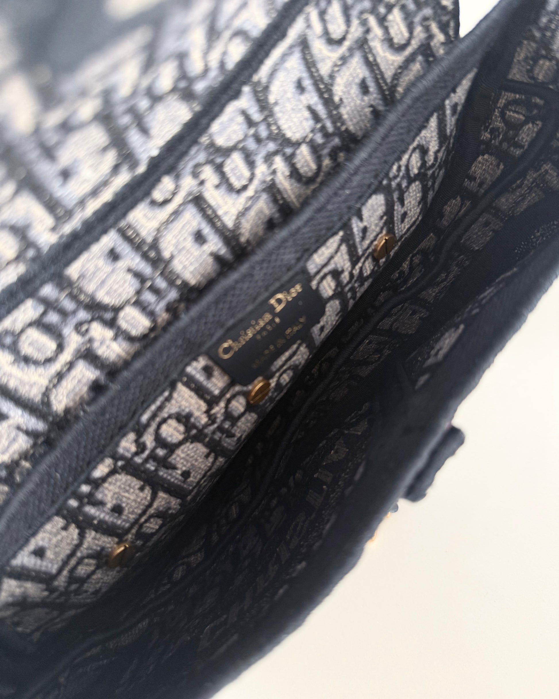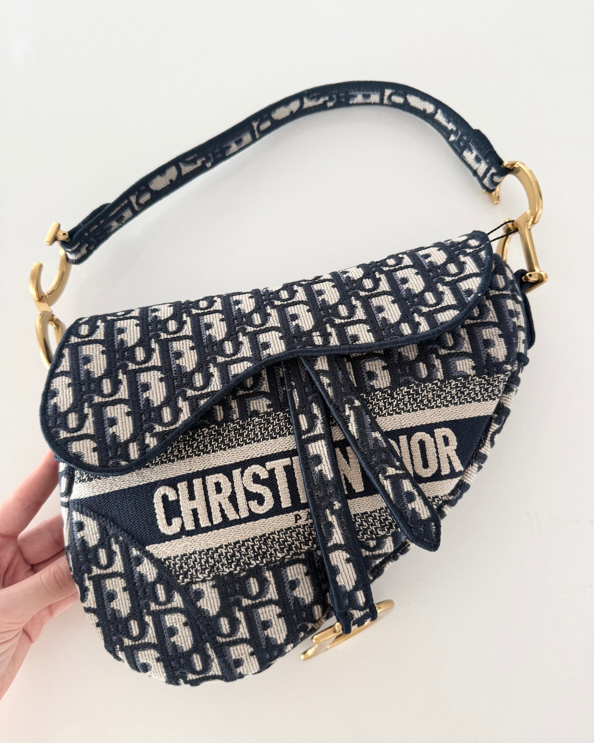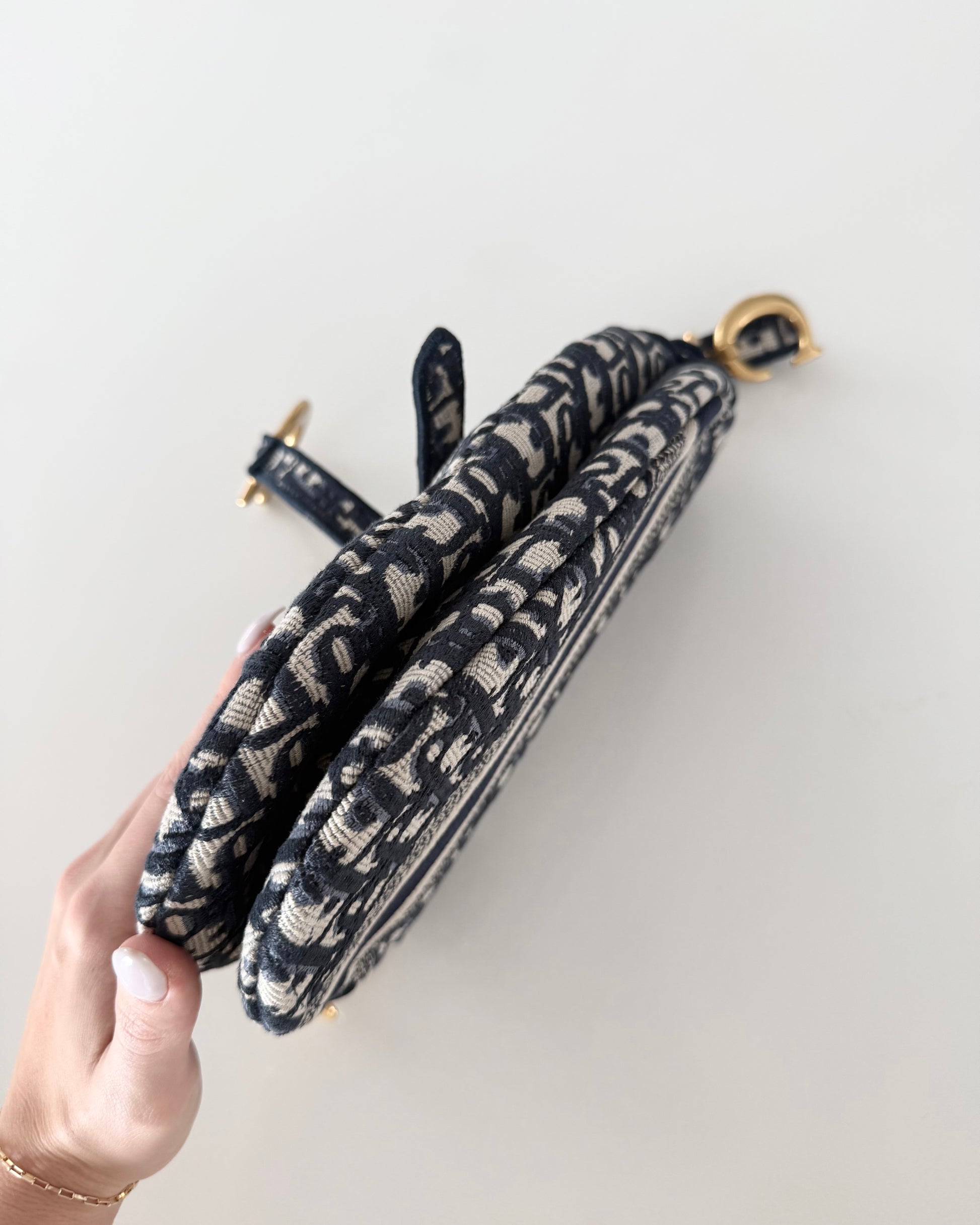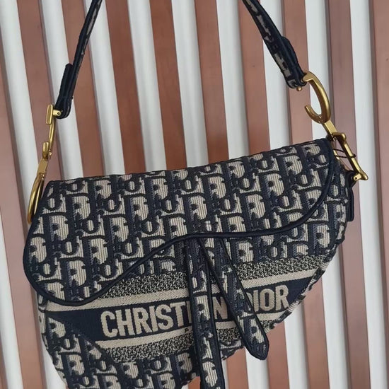 Christian Dior Blue Oblique Embroided Canvas Saddle Bag