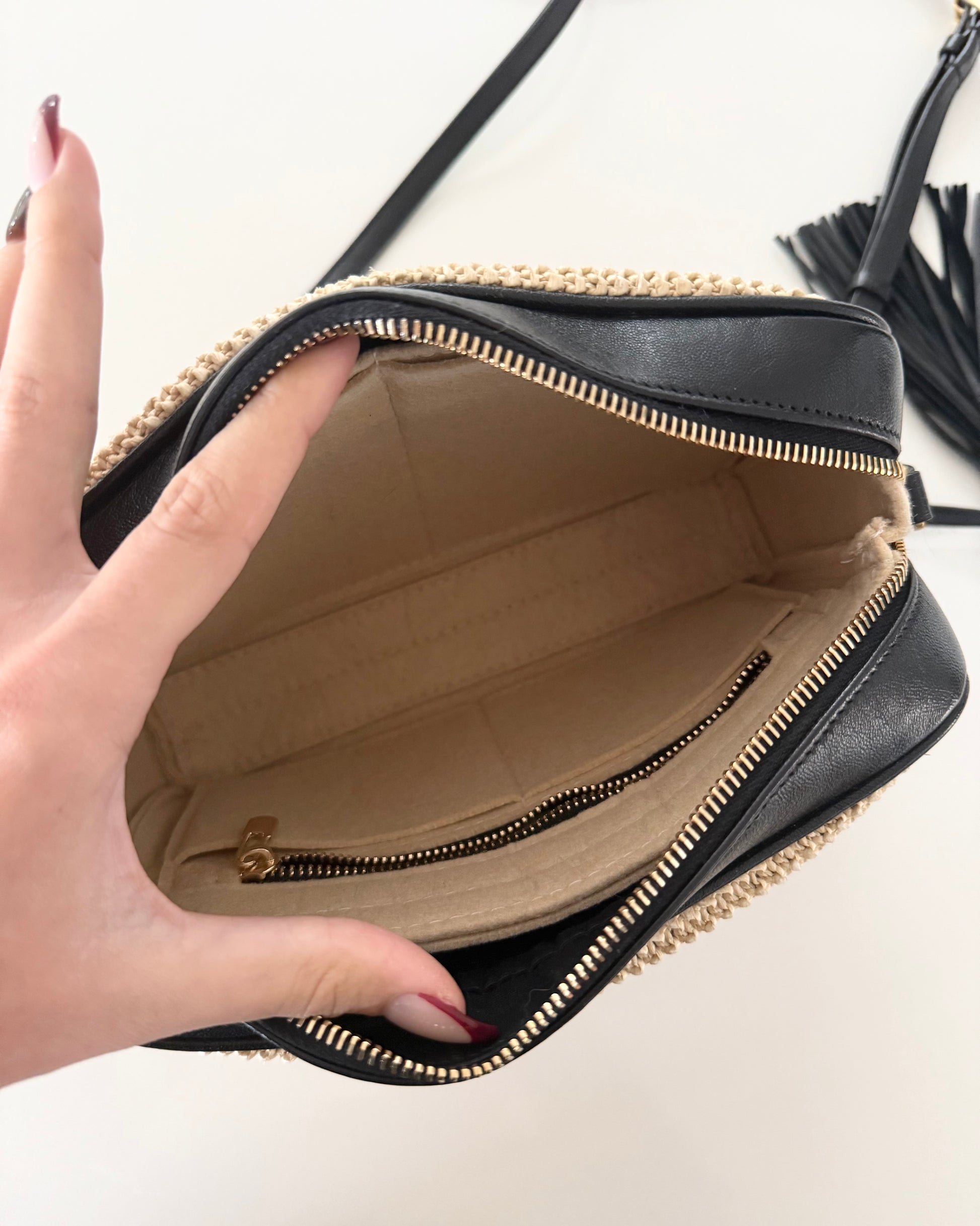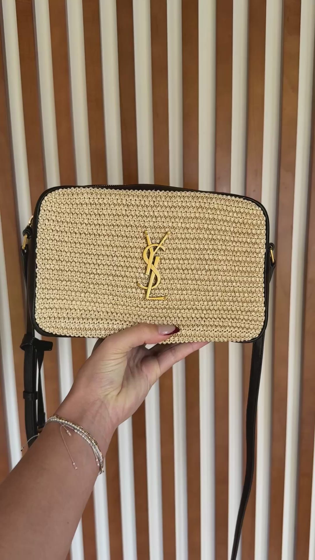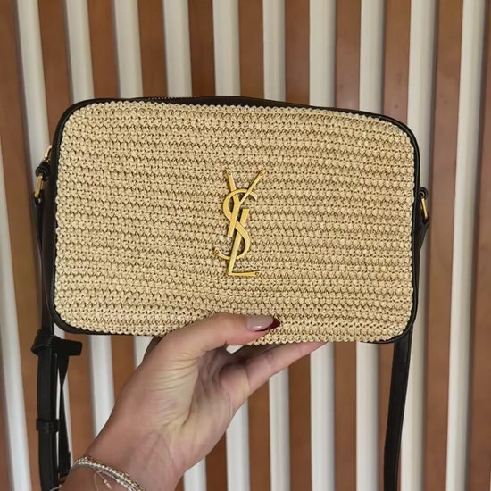 Saint Laurent Black Leather and Raffia Lou Camera Bag