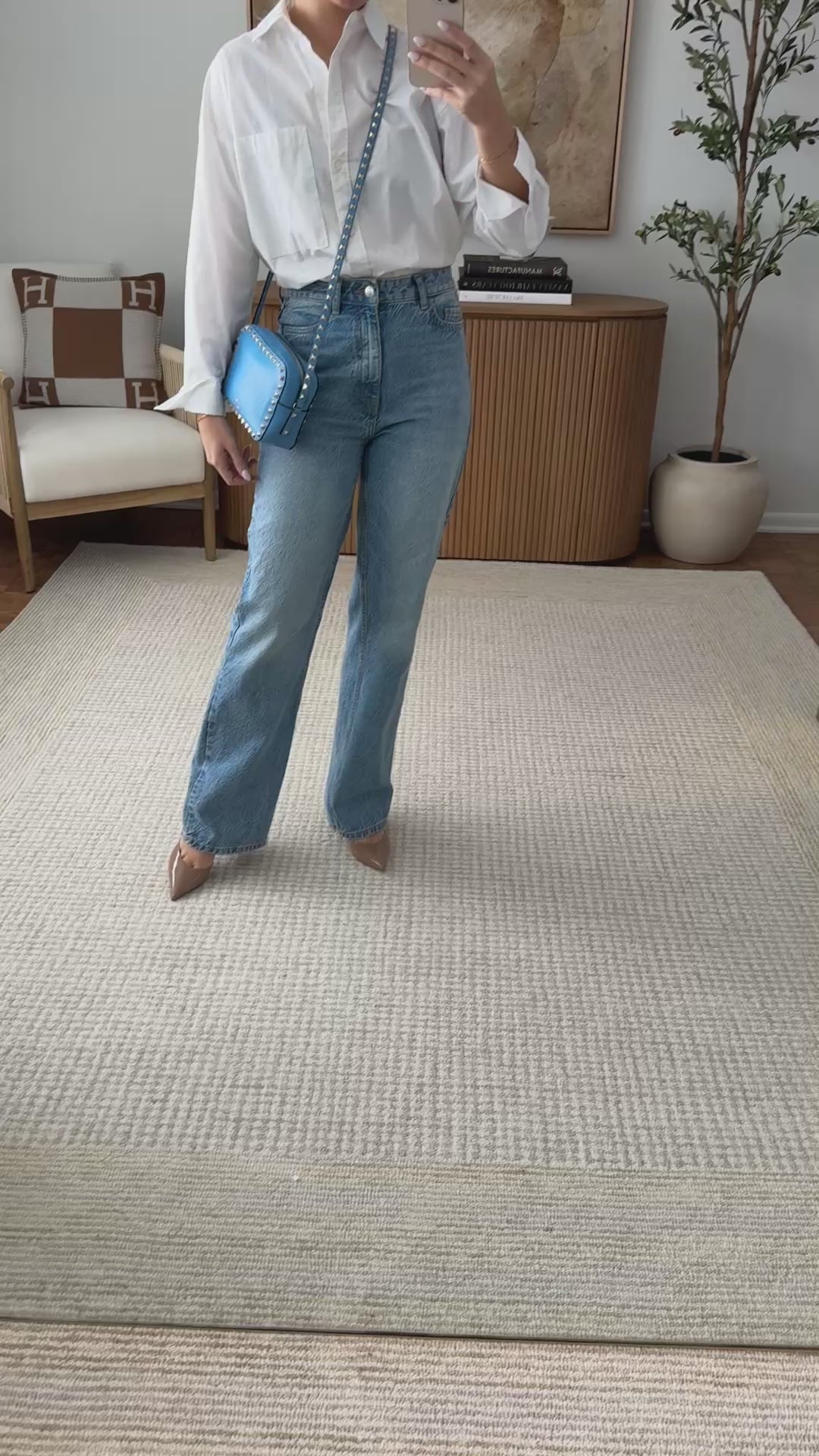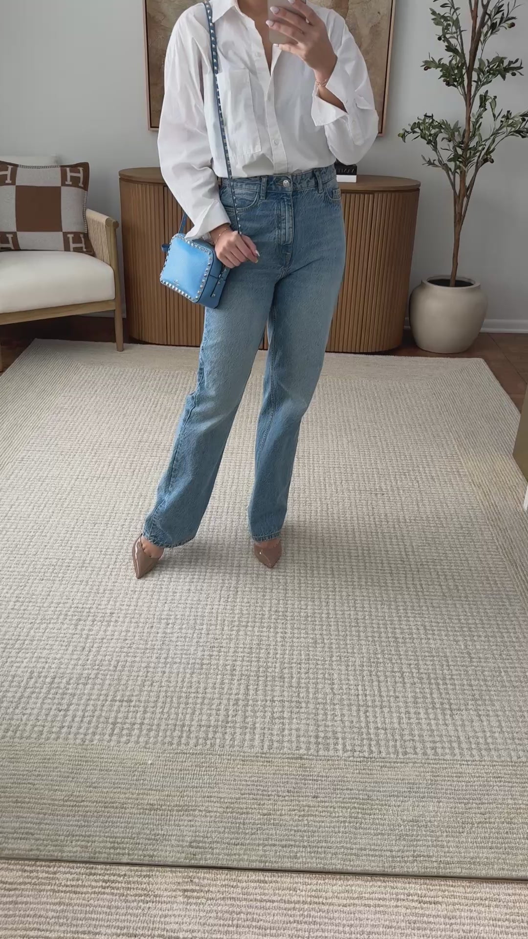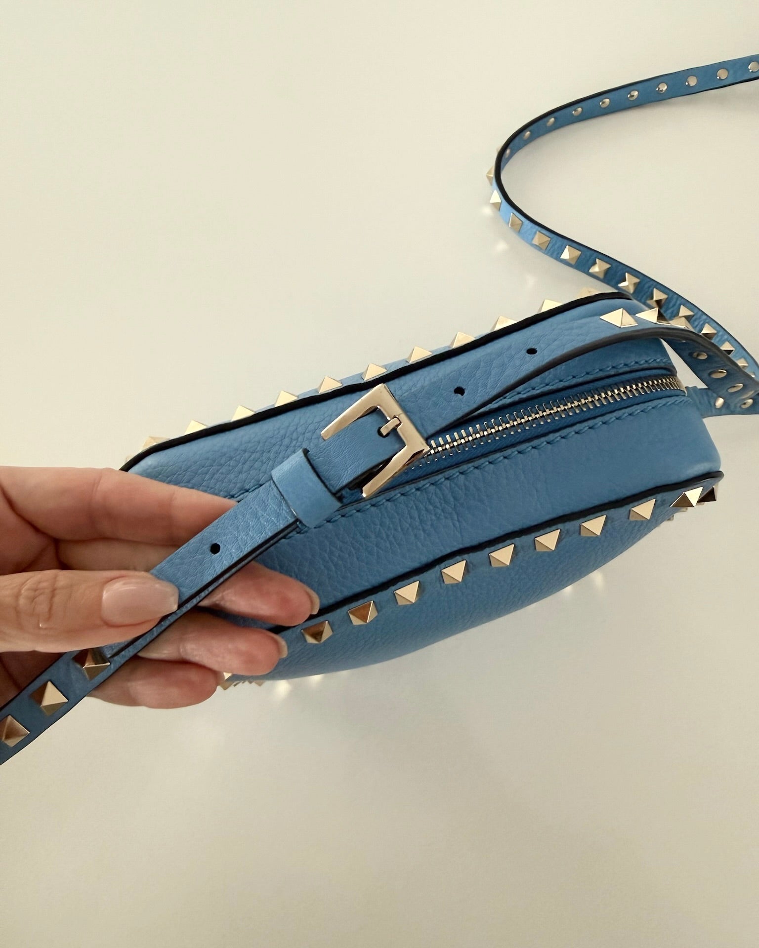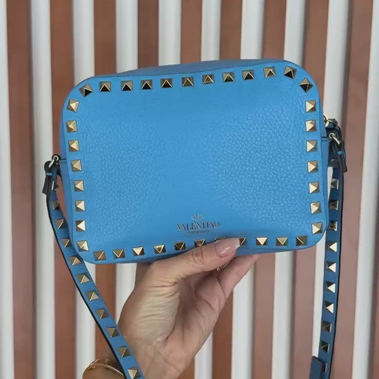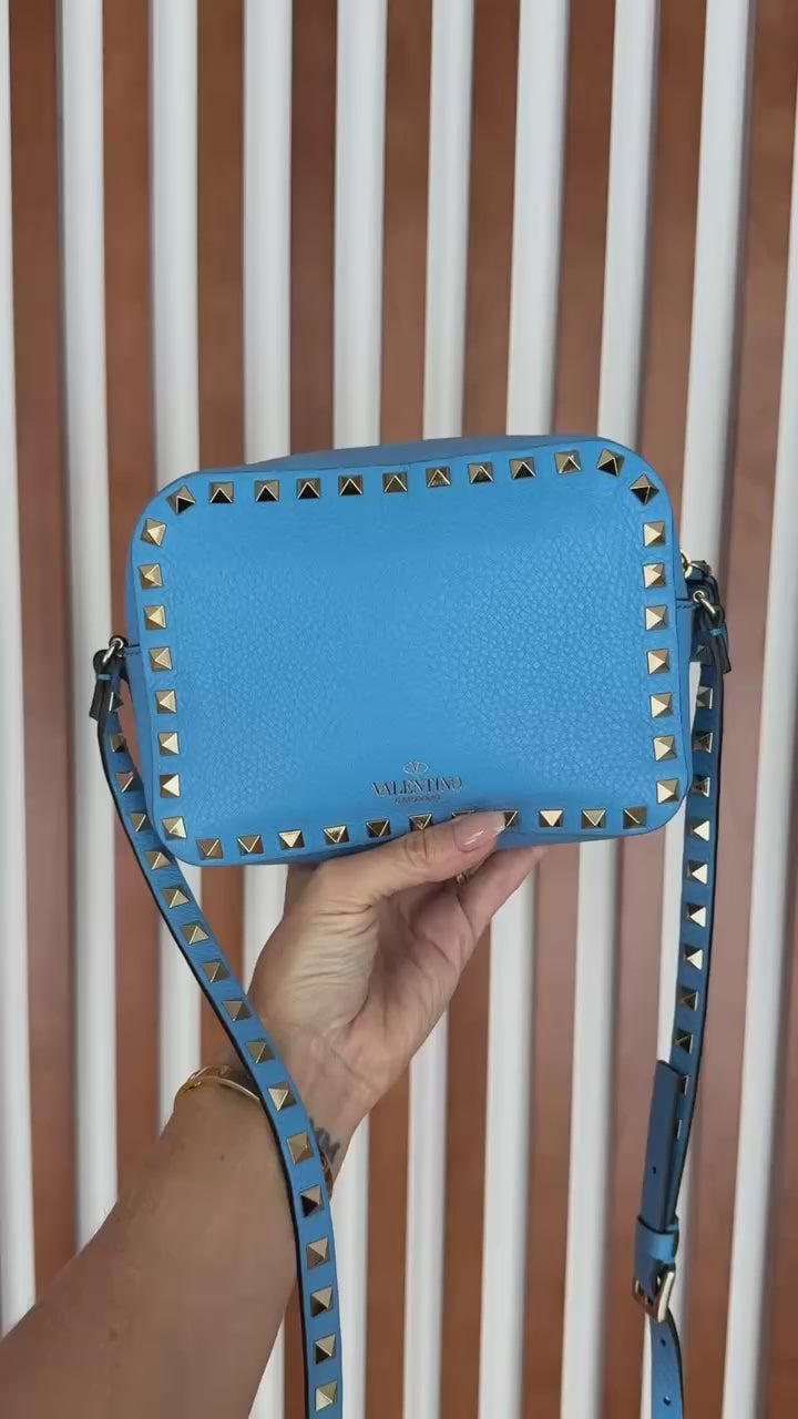 Valentino Blue Leather Rockstud Camera Bag Crossbody
